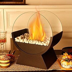 rund glasbordskamin, rent brinnande bärbar eldskål, ventillös eldstad för inomhus- och utomhusfester