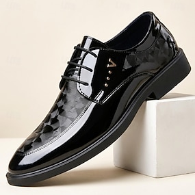 Herrskor i svart oxfordskinn med glansig geometrisk struktur, moderna snörskor för formella män, perfekta för affärer, bröllop, fester och kvällsevenemang