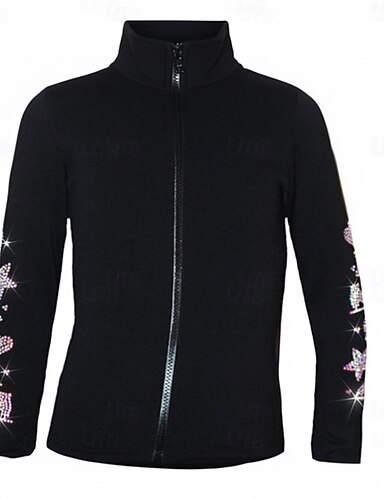 konståkningsjacka fleece dam flickor skridskoåkningsjacka topp svart stretchig tränings- och tävlingskläder termisk varm kristall/strass långärmad skridskoåkning konståkning