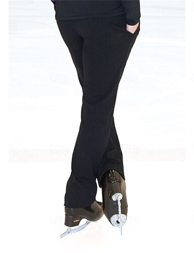 Byxor till konståkning Dam Skridskor Underdelar Svart Elastan Elastisk Träning Tävling Skridskoplagg Håller värmen Klassisk Kristall / Strass Stenar Skridskoåkning Konståkning