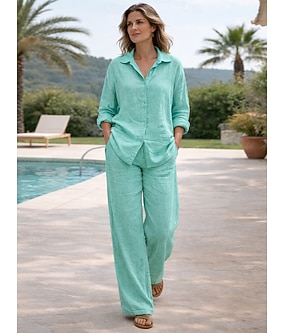 dam tvådelade set bomullsblandning set långärmad skjortkrage enfärgad aktiv grundläggande casual daglig svart vit gul sommar normal passform