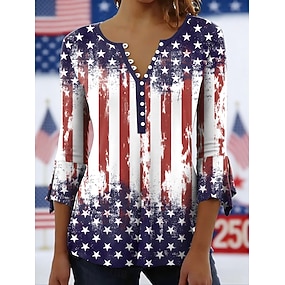 Amerikanska självständighetsdagen Dam Blus Knappar Mönster Grafisk Vintage Stylish Ledigt Kortärmad V-hals Långa toppar Dagligen Blå Vit Rodnande Rosa Purpur Grön Sommar Vår