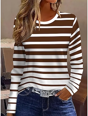Dam T-shirt T-tröja Randig Mode Modern Långärmad Rund hals Vanliga toppar Dagligen Blå Grå Sommar Vår