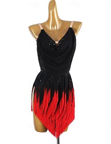 latinsk klänning med fransar för kvinnor, prestationsträning, hög spandex