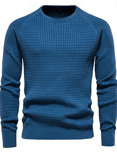 Herr Jultröja Jultröjor Semestertröja Pullover tröja Stickad tröja Ribbad Sticka Vanliga toppar Stickat Rutig Rund hals Mode Grundläggande Semester Dagliga kläder Kläder Höst Vinter Ljusblå S M L