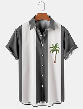 Herr Färgblock Kokosnötsträd Tropiska växter Sommarskjorta Casual skjorta Strandskjorta Kortärmad Skjorta Nedvikt Mode Femtiotal Fritid Semester Gata Utekväll Svart Blå Brun S M L
