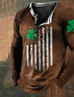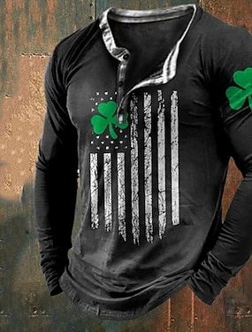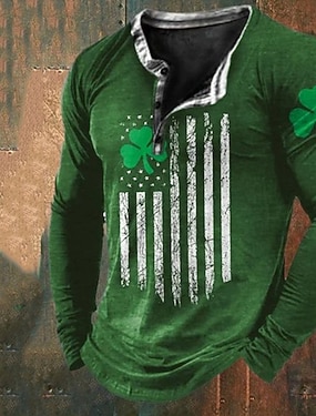 St. Patricks Day mäns henley skjorta tee grafisk klöver henley kläder 3D-utskrift vardag St. Patricks Day lång ärm knäppning utskrift mode designer