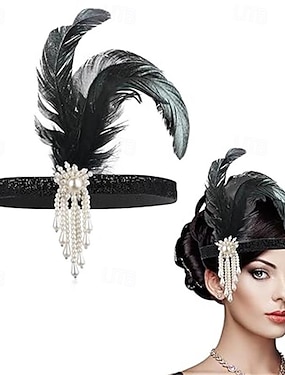 Vintage 1920-talet Den store Gatsby Flapperpannband i tjugotalsstil Tillbehör set charleston Bröllopsgäst Fjäder Mode Maskeradkläder Dam Maskerad Bröllopsfest Möhippa Festival Vuxna Pannband Alla