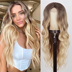 Blond Peruk - Lång Blond Vågig Peruk för Kvinnor Mitten Del Peruk Inga Spetsar 26 tum Naturlig Lockig Syntetisk Peruk Värmebeständigt Fiber Peruker för Dagligt Partyanvändning Halloween Peruker