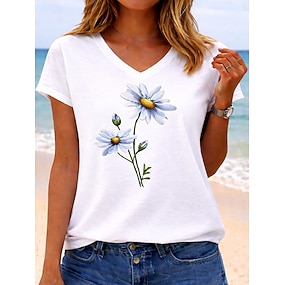 Dam T-shirt Mönster Grafisk Djur Bokstav Stylish Klassisk Ledigt Kortärmad V-hals Vanliga toppar Ledigt Dagligen Vit Rubinrött Grön Sommar Vår