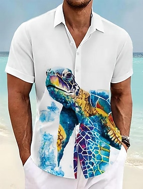 Herr Tropisk Sköldpaddor Skjorta Hawaii skjorta Aloha skjorta Kortärmad Skjorta Nedvikt Semester Hawaiisk Utomhus Semester Hawaiisk Vit Blå Grön S M L