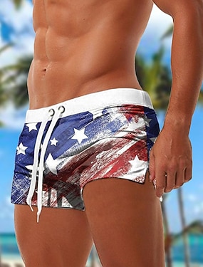 Herr Flagga 4 juli USA:s 250-årsjubileum Amerikanska flaggan Badshorts Boardshorts Boxershorts Medium Midja Mode Designer Strand Surfing Helgdag Snörning Ficka Elastisk midja Designer Kläder