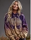 Dam Viking Vintage Tröja med Hoodie Djur Tribal Vintage Casual Långärmad Huva Normal Toppar Casual Lila Vår Höst Vinter