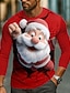Jul Herr jultomten Rolig T-shirt Långärmad T-shirt 3D-tryck Rund hals Skjorta Mode Grundläggande 3D Gata Ledigt Dagligen Vit Rubinrött Sommar Vår Kläder S M L XL XXL XXXL