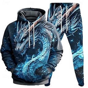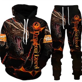 Herr Grafisk Drake 2st 3D-tröja set Träningsoverall Huvtröjor Långärmad Långa byxor Huva Streetwear Designer Grundläggande Sport & Utomhus Ledigt Sport Mönster Vår Höst Svart Rubinrött Orange