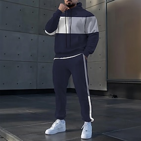 Herr Färgblock 2st 3D-tröja set Träningsoverall Hoodie-tröja Långärmad Långa byxor Huva Ledigt vardag Fritids- 3D-utskrift Vår Höst Vinter Gul Rubinrött Blå