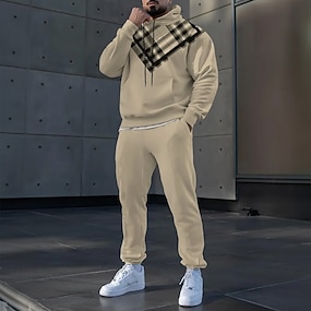 Herr Rutig Färgblock 2st 3D-tröja set Träningsoverall Hoodie-tröja Långärmad Långa byxor Huva Sportig Ledigt vardag Fritids- 3D-utskrift Vår Höst Vinter Brun