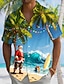 Jul Herr jultomten Julbelysning Skjorta Knapp upp skjorta Kortärmad Rolig Helgdag Sommar Vår Nedvikt 3D-utskrift krage skjortor Främre en ficka Blå