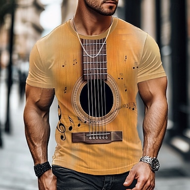 Herr Musik Guitarr T-shirt Kortärmad T-shirt 3D-tryck Rund hals Skjorta drivna Designer Fest Helgdag Nattklubb Gul Sommar Vår Kläder S M L XL XXL XXXL