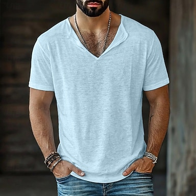 Herr T-tröja Linne T-shirt Kort ärm V-hals Sommar Slät Mode Designer Grundläggande Mjukt Ledigt Semester Gata Blå Svart Vit Topp t-shirt för män