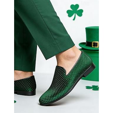 Gröna vävda loafers för män – trendiga slip-on-skor med vävd textur – perfekta för fester och avslappnade utflykter på St. Patrick's Day