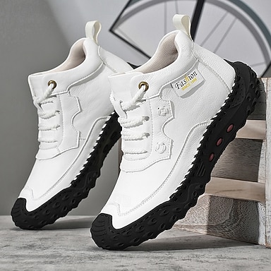 Vita premium herrsneakers i elegant konstläder, perfekta för utomhusresor och avslappnade sommarkläder