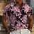 Herr Kokosnötsträd Tropiska växter Blommor Hawaii skjorta Knapp upp skjorta Ståkrageskjorta Kortärmad Hawaiisk Strandsemester Sommar Vår Kraghalsband 3D-utskrift Linne som skjorta Blå Rodnande Rosa