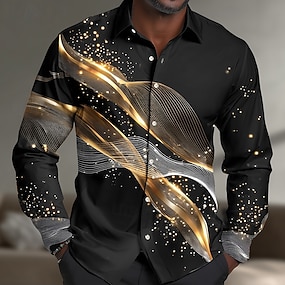 Herr Geometrisk Lutning Vågiga Skjorta Knapp upp skjorta Avslappnad klänningskjorta Långärmad Mode Casual Dagligen Streetwear Semester Sommar Vår Nedvikt 3D-utskrift krage skjortor Svart