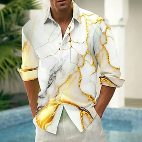 Herr Geometrisk Marmor Abstrakt flytande konst Skjorta Knapp upp skjorta Avslappnad klänningskjorta Långärmad Mode Casual Utomhus Vardag Vår Höst Nedvikt 3D-utskrift krage skjortor Blå Rodnande Rosa