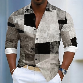 Herr Färgblock Lappverk Abstrakt konst Skjorta Knapp upp skjorta Långärmad Mode Casual Dagligen Utomhus Streetwear Vår Höst Nedvikt 3D-utskrift Linne som skjorta Brun