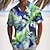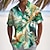 Herr Skjorta linneskjorta Strandskjorta Grafiska tryck Utomhus Semester Gul Rubinrött Blå Grön Kortärmad Hög krage Sommar Vår Kläder Mönster
