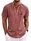 Herr Skjorta Linneskjorta Sommarskjorta Standkläder Bandkrageskjorta Knapp upp skjorta Ensfärgat Ledigt Semester Blå Svart Vit Rodnande Rosa Kortärmad Kraghalsband Sommar Vår Kläder Ficka