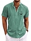 Herr Linneskjorta Knapp upp skjorta retro skjortor Vintage skjorta Etnisk skjorta Semester Dagliga kläder Gul Grön Khaki grön Beige Kortärmad Skjortor med krage Sommar Vår Kläder