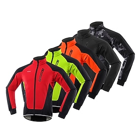 Arsuxeo Herr Cykeljacka Fleece-jacka Vinter Håller värmen Vindtät Fleecefoder Andningsfunktion Cykel Jacka Vindjackor Bergscykling Vägcykling Stadscykling Svart Grön Orange Cykelkläder / Elastan