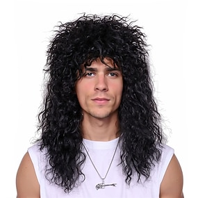 80-tal rocker peruk för män och kvinnor mullet peruk lång lockig tung metall rolig peruk för sångare kostym cosplay karneval 70-tal retro fest hippies karaoke halloween peruker