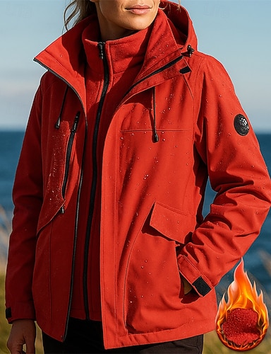Dam Vandringsjacka Fleece-jacka Vinterkappa 3-i-1-jacka Vinter Höst Utomhus Vattentät Vindtät Överdelar Svart Vit Röd Purpur