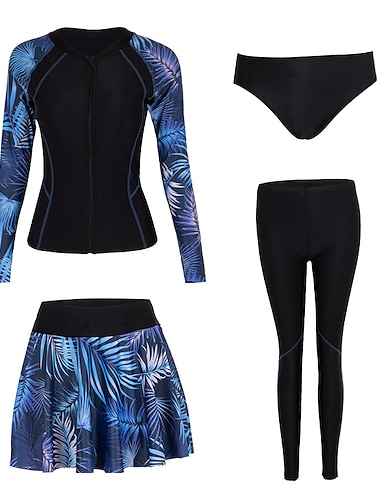 Dam "Dykdräkt, Baddräkt" Blommig Dragkedja fram UV Solskydd UPF50+ Snabb tork Långärmad Baddräkt Surfing Strand Vattensport Sommar