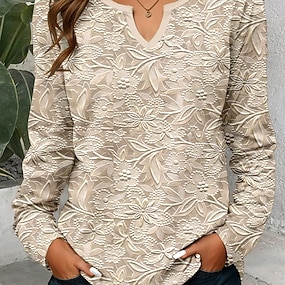 Dam T-shirt Långärmad Top 3D Tryck Blommor Casual Vanliga Toppar Dagligt Tryck Silver Rosa Himmelblå Khaki Vår Höst Förhöst