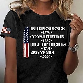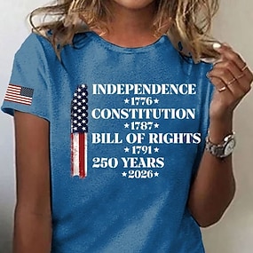 Amerikanska självständighetsdagen Dam T-shirt T-tröja Mönster Blommig Grafisk Graffiti Stylish Klassisk Ledigt Kortärmad V-hals Vanliga toppar Dagligen Utekväll Helgen Blå Rubinrött Kaki Sommar Vår