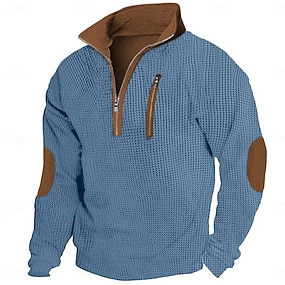Herr T-shirt Våffelstickad t-shirt T-tröja Långärmad tröja Långärmad Fjärdedels blixtlås Vår & Höst Färgblock Mode Designer Grundläggande Lappverk Dragkedja Semester Gata Utekväll Svart Marinbl