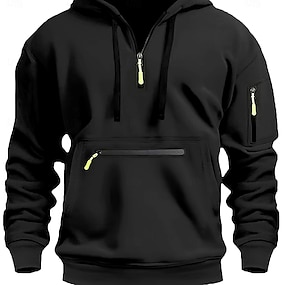 Herr Huvtröja Huvtröja med dragkedja i Quarter Taktisk hoodie Svart Rodnande Rosa Vin Armégrön Blå Huva Färgblock Slät Lappverk Ficka Sport & Utomhus Dagligen Helgdag Polyester Streetwear
