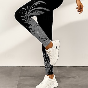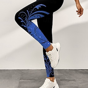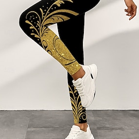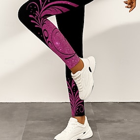 Julens kvinnors normala tights leggings designer glitter glitter och glänsa lång högmidja grafiska tryck blomma blommigt tryck booty lift komfort mage kontroll hög elastisk yoga helg skinny