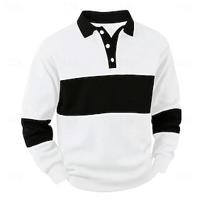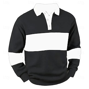 Herr Randig Pullover Rugby Polo Rugby pikétröjor Långärmad Polotröjor Krage Vintage Ledigt Utomhus Gata Vardag 3D-utskrift Knappar Vår Höst Vinter Blå Rödbrun Svart