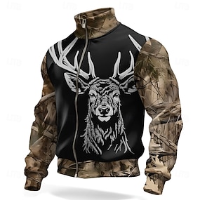 Herr Cowboy Hjort Tröja Långärmad Tröjor Huva Vintage vilda västern-stil Semester Streetwear Höst vinter Svart Brun Grön Kläder Designer Grafiskt tryck S M L XL XXL XXXL