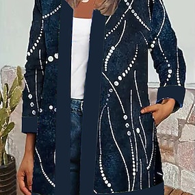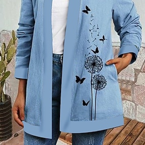 Dam Jacka Vardag Fyrkantig hals Mönster Blommig Ledigt / vardag Vintage Lös passning Ytterkläder Långärmad Vår Havsblå S