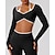 Dam Sporttröjor pilates topp Sport topp Platt halsringning Stretch svettabsorberande Tight passform Långärmad sporter Ensfärgat Överdelar För Pilates Gym Löpning Sportkläder