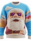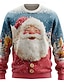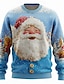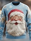Ful jultröja Herr jultomten 3D-utskrift Pullover tröja Stickat Rund halsringning Ledigt Semester Dagligen Festival Håller värmen Långärmad Vår Höst Vinter Rubinrött Blå