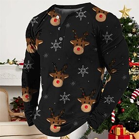 jul t-shirt herr t-shirt henley skjorta t-shirt grafisk älg henley svart röd marinblå blå lila 3d-tryck utomhus jul långärmad lapptäcke button-down kläder kläder designer basic