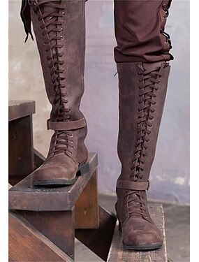 Medeltida kostymer Renässans Skor Knähöga Stövlar Platta jazzstövlar Maskeradkläder Herr Keltiskt Pirat Halloween Maskerad Prestanda LARP Ren Faire Vuxna Skor