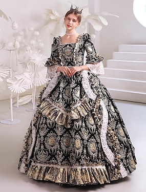Retro / vintage Kläder Maskerad Snörning Plisserad Magkontroll Jacquard Maskeradkläder Dam Halloween Karnival Maskerad Prestanda Fest Halloween Vuxna Kjol Korsett